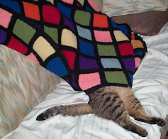 The afghan Mom had made in the early 70's had the same pattern as the Windows flag logo. Since this was almost 20 years before Microsoft introduced the flag logo for Windows 3.1 Dad asked, "does Bill Gates owe Mom a royalty?". Obviously not but hey if Bill & Melinda want to make a big donation to the United Way I'm sure Mom, Dad and the rest of us would be pleased. I still have the afghan and consider it magic, whenever I get a cold it makes me well in seven days, without it I'm sure it would take a whole week :-). My former cat Lizzie loved to sleep under it, although she never learned how to use it for best warmth.